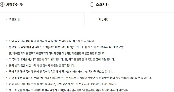 옥천교 앞에서 시작하고 1시간 정도 소요된다